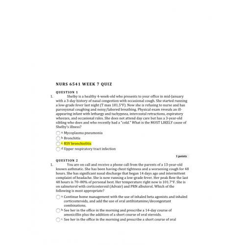 NURS 6541 Week 7 Quiz 3 - Question and Answers