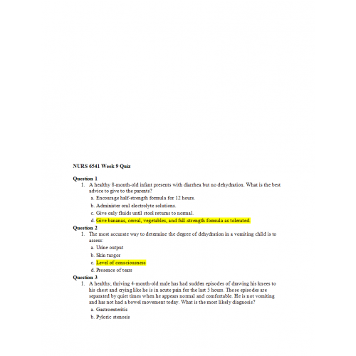 NURS 6541 Week 9 Quiz 1 - Question and Answers