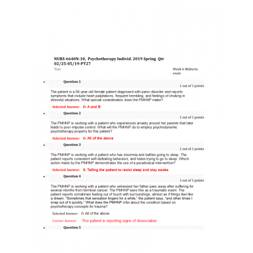 NURS 6640 Midterm Exam 3 with Answers (75/75 Points)