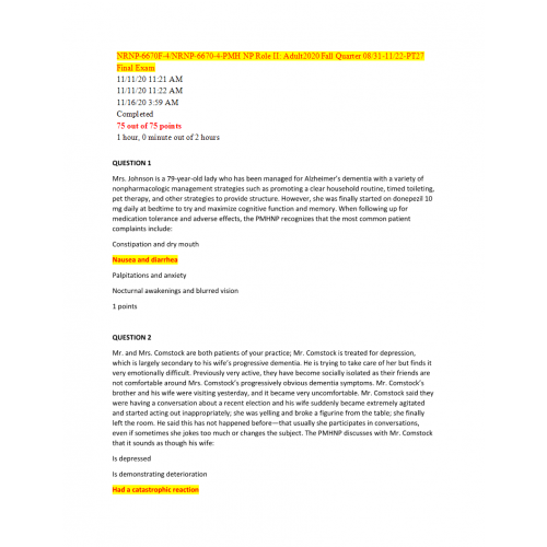 NURS 6670 Final Exam 1 - Question and Answers (75/75 Points)