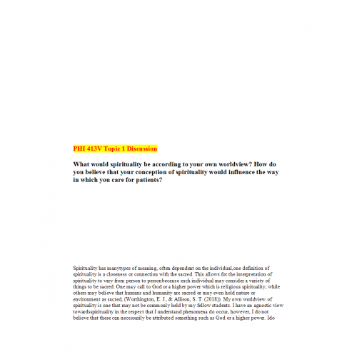 What would spirituality be according to your own worldview? How do you believe that your conception of spirituality would influence the way in which you care for patients?