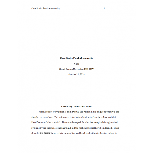 Write a 750-1000 word analysis of "Case Study: Fetal Abnormality." Be sure to address the following questions:
