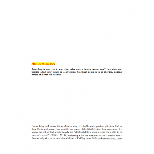 According to your worldview, what value does a human person have? How does your position affect your stance on controversial bioethical issues, such as abortion, designer babies, and stem cell research?