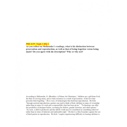 As you reflect on Meilaender’s readings, what is his distinction between procreation and reproduction, as well as that of being begotten versus being made? Do you agree with his description? Why or why not?