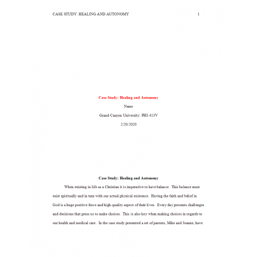 PHI 413V Topic 3 Assignment, Case Study on Biomedical Ethics in the Christian Narrative - , Healing and Autonomy