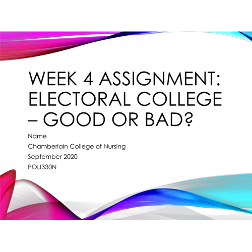 POLI 330N Week 4 Assignment, Electoral College - Good or Bad