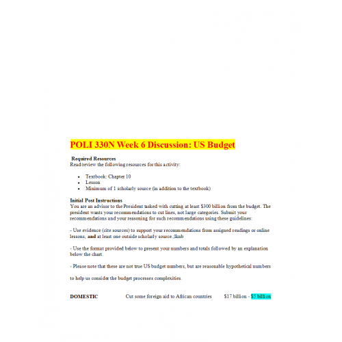 POLI 330N Discussion Question with Answers Week 1 to 8