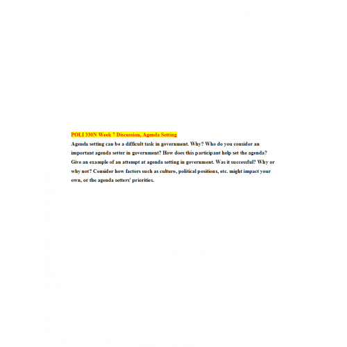 POLI 330N Week 7 Discussion, Agenda Setting