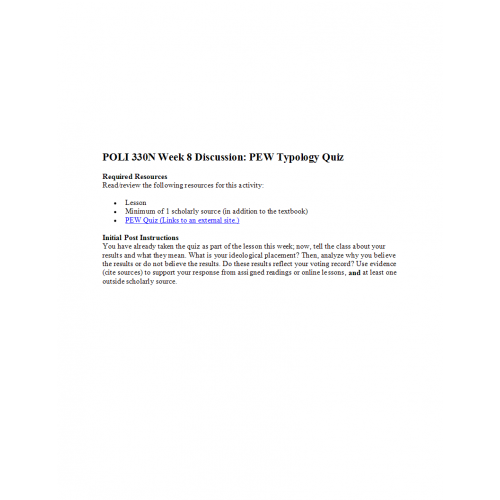 POLI 330N Discussion Question with Answers Week 1 to 8