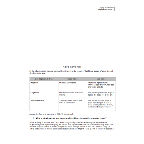 In the following chart, name a positive (Good News) and a negative (Bad News) aspect of aging for each developmental area.