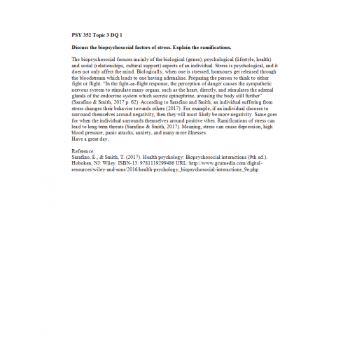 Discuss the biopsychosocial factors of stress. Explain the ramifications.