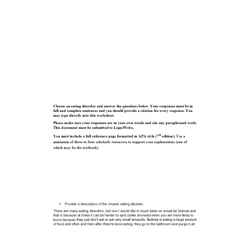 - Choose one Eating Disorder from the combined resources this week in the course materials for guidance (i.e., DSM-5 Fact-Sheet).