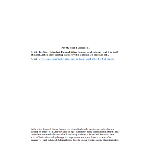 Article: Fox News: Defendant, Emanuel Kidega Samson, says he doesn't recall if he shot 8 at church. Article about shooting that occurred in Nashville at a church in 2017.