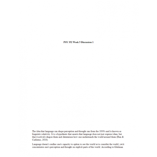 PSY 352 Week 5 Discussion 1, Language, Perception and Cognition