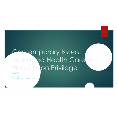 PSY 480 Week 5 Contemporary Issues - Managed Health care vs Prescription Privilege
