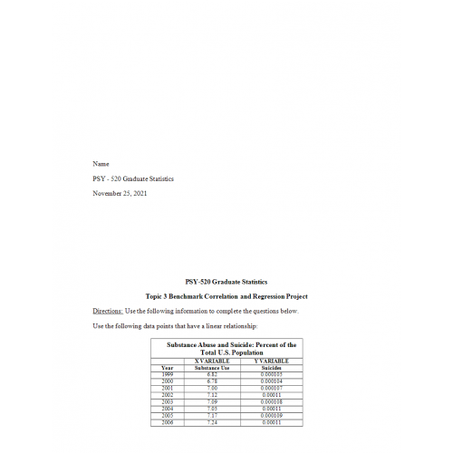 PSY 520 Topic 3 Benchmark Correlation and Regression Project: 2022