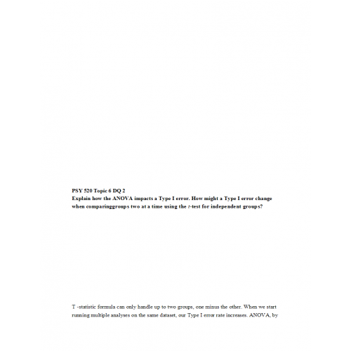 Explain how the ANOVA impacts a Type I error. How might a Type I error change when comparing groups two at a time using the t-test for independent groups?