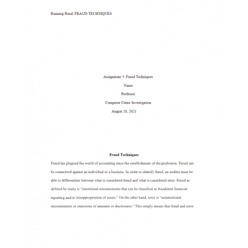 SEC 405 Week 7 Assignment 3, Fraud Techniques