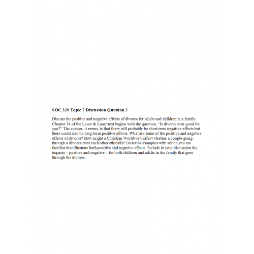 SOC 320 Topic 7 Discussion Question 2