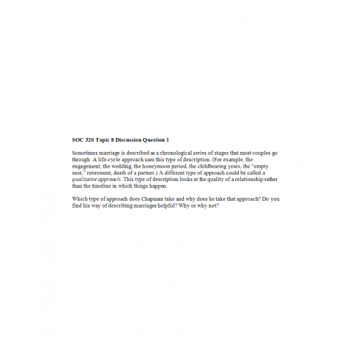 SOC 320 Topic 8 Discussion Question 1