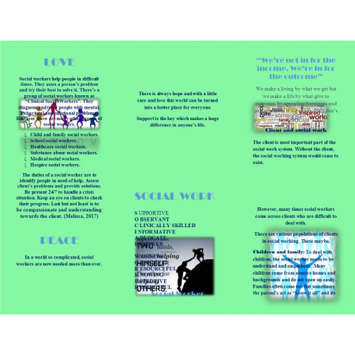 Both sides of the tri-fold brochure must be fully utilized. Images may be used; however, only use images with small file sizes. You may use Microsoft Word, which has several creative document templates.