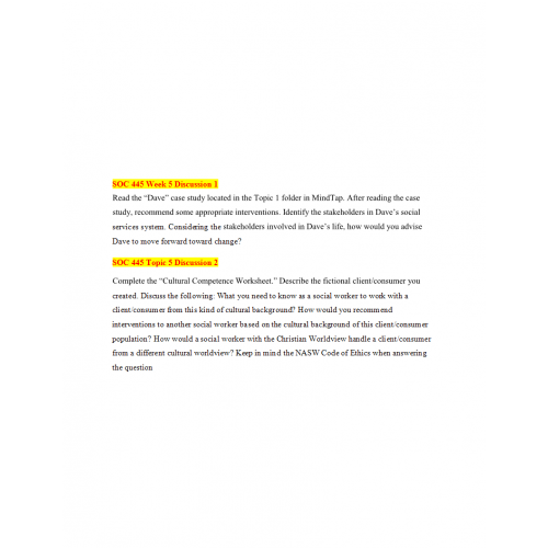 SOC 445 Week 5 Discussion 1 and 2 with Ansswers