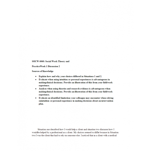 SOCW 6060 Week 1 Discussion 2: Sources of Knowledge