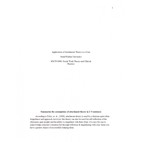 SOCW 6060 Week 3 Assignment, Application of Attachment Theory to a Case Study