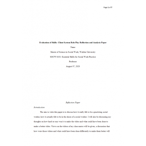 SOCW 6101 Week 10 Assignment, Client System Role-Play Reflection and Analysis Paper