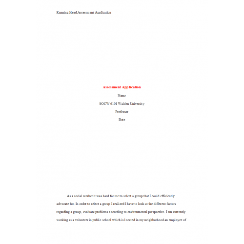 SOCW 6101 Week 8 Assignment, Assessment Application