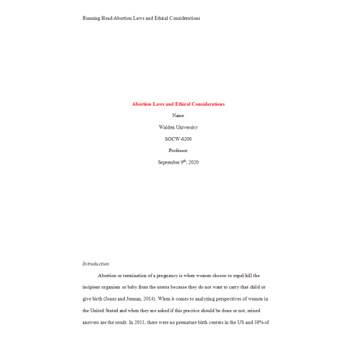 SOCW 6200 Week 2 Assignment, Abortion Laws and Ethical Consideration