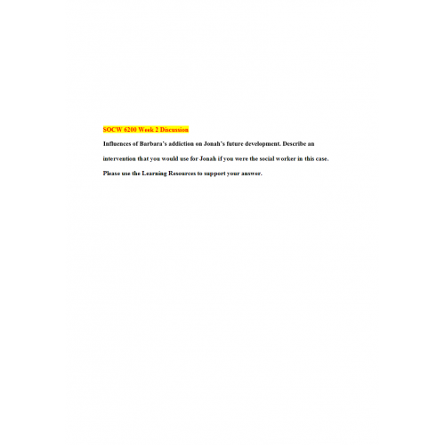 Influences of Barbara’s addiction on Jonah’s future development. Describe an intervention that you would use for Jonah if you were the social worker in this case. Please use the Learning Resources to support your answer.